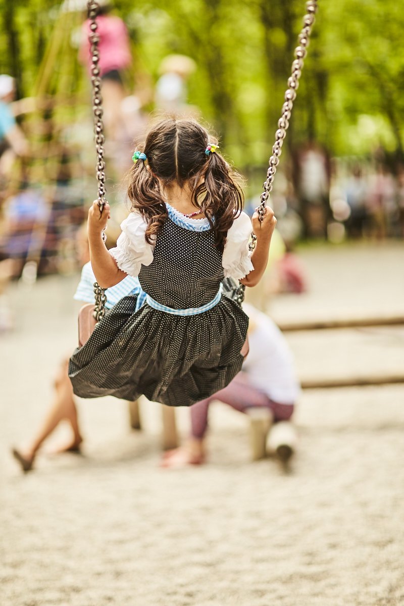The playground is raised on a plateau and is therefore easily visible. We have placed tables directly around the playing area. This means it's not just the children who have fun — mums and dads can also relax and enjoy their beer garden visit.